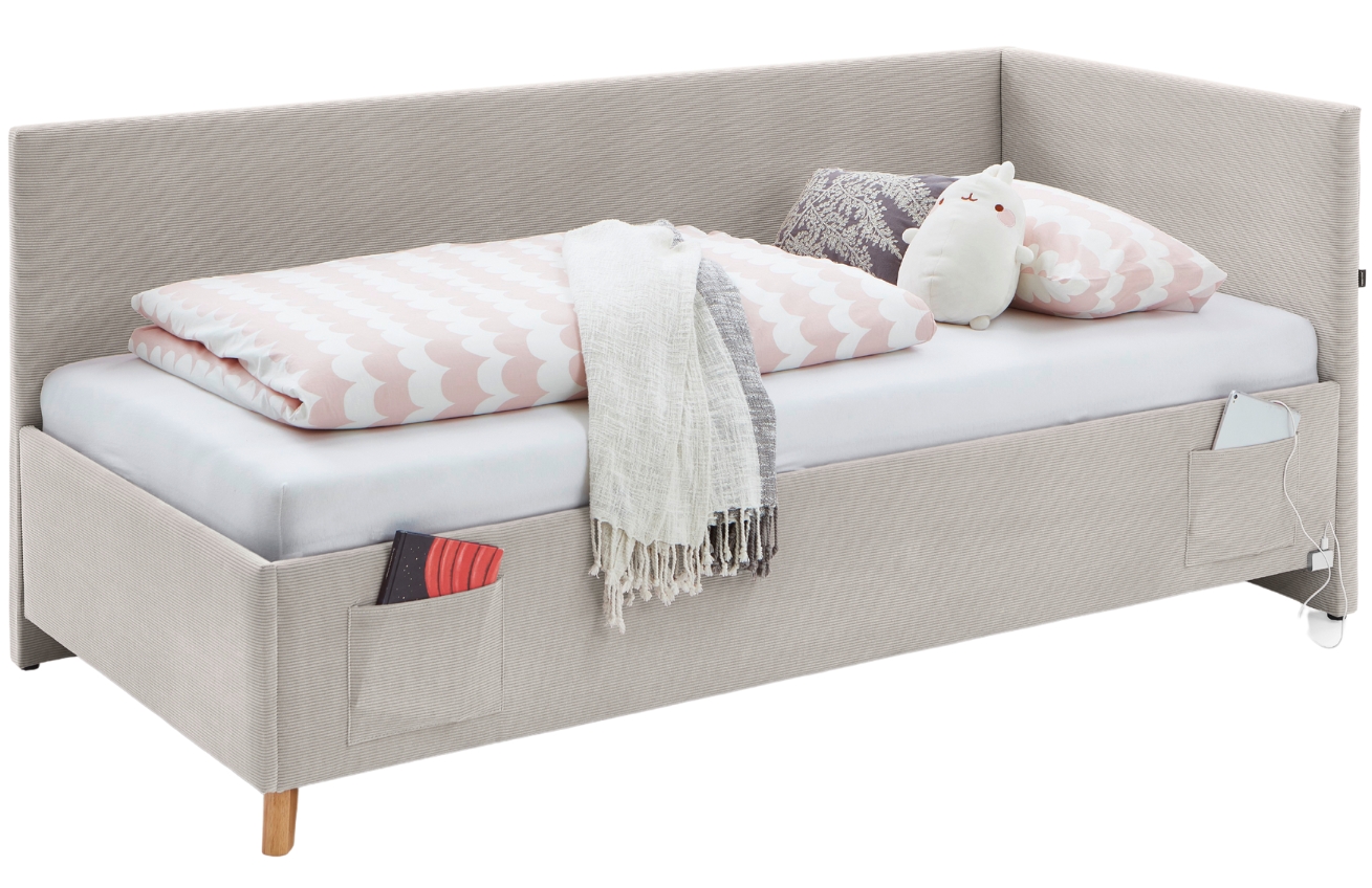 Stylová postel Cool s manšestrovým čalouněním je skvělou volbou pro dětské i studentské pokoje. Na jejím boku najdete prostorné kapsy, do kterých se vejde vše, co bude potřeba mít před spaním po ruce – knížka, časopis, herní konzole i drobné hračky či brýle na čtení. Dalším praktickým detailem je zabudovaný výstup pro USB i USB-C, díky kterému je možné nabíjet telefon, MP3 přehrávač nebo třeba hodinky. Postel Cool je navíc dostupná ve čtyřech barvách, ze kterých si vyberou kluci i holky. K dostání je také varianta bez bočního panelu.