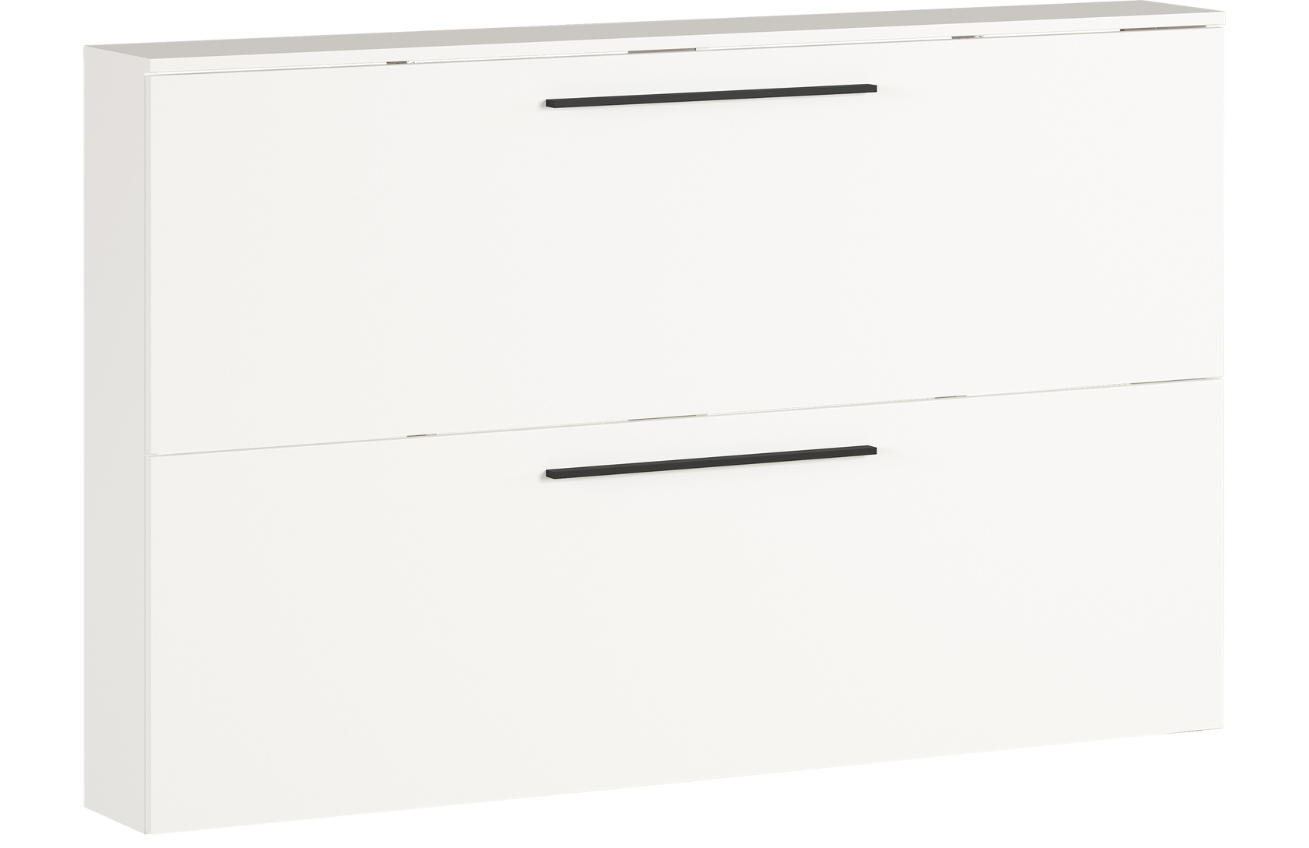 Designový botník GEMA Urlex vás zaujme svým příjemným vzhledem. Je vyrobený z laminátu a na originalitě mu dodávají černé kovový úchytky, které v kombinaci s bílým lakovaným korpusem botníku vypadají skvěle. Botník Urlex přinese do vaší předsíně pocit tepla a stane se nezbytnou součástí vašeho domova. Dvě výklopné zásuvky nabízejí prostor pro uložení až 12 párů bot. Botník je vhodný pro zavěšení a nebo ho můžete umístit přímo na zem.
