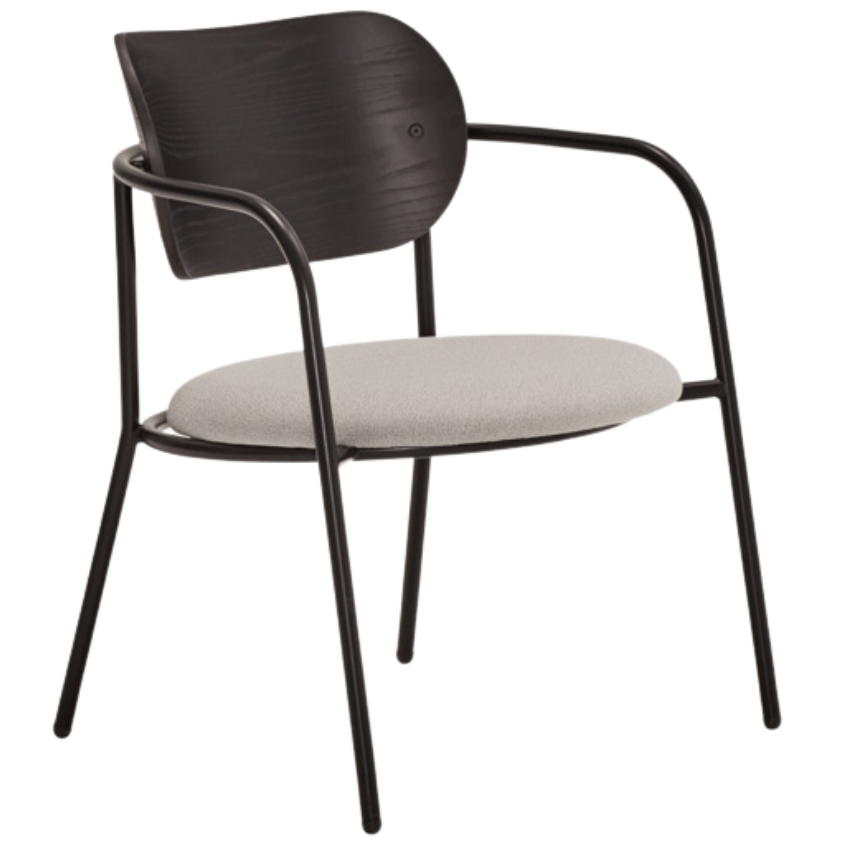Stylové lounge křeslo Eclipse od značky Teulat nachází inspiraci v klasických designech kombinujících kovové a dřevěné prvky, které tvoří přímo ikonický vzhled. Příjemnou látkou čalouněný sedák a černé opěradlo s dřevěným dekorem jsou tvarované s ohledem na pohodlí během dlouhého sezení. Jde o elegantní a všestranný design, který krásně splyne s okolím ať už v koutku obývacího pokoje, kolem jídelního či zasedacího stolu v kanceláři nebo umístěný v hotelové hale.