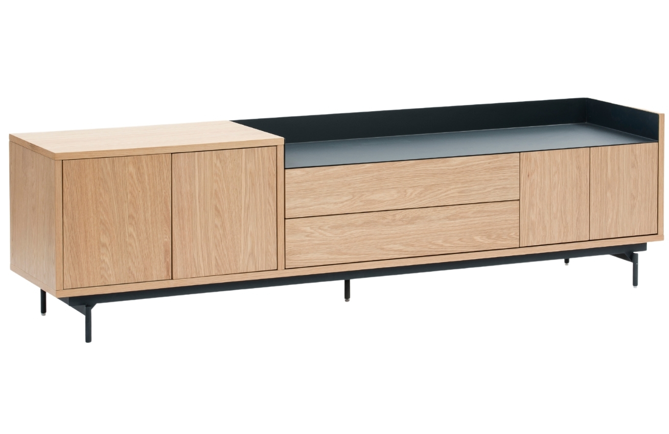 Popis produktu Dubový TV stolek Teulat Valley 180 x 40 cm s tmavě modrým dekorem