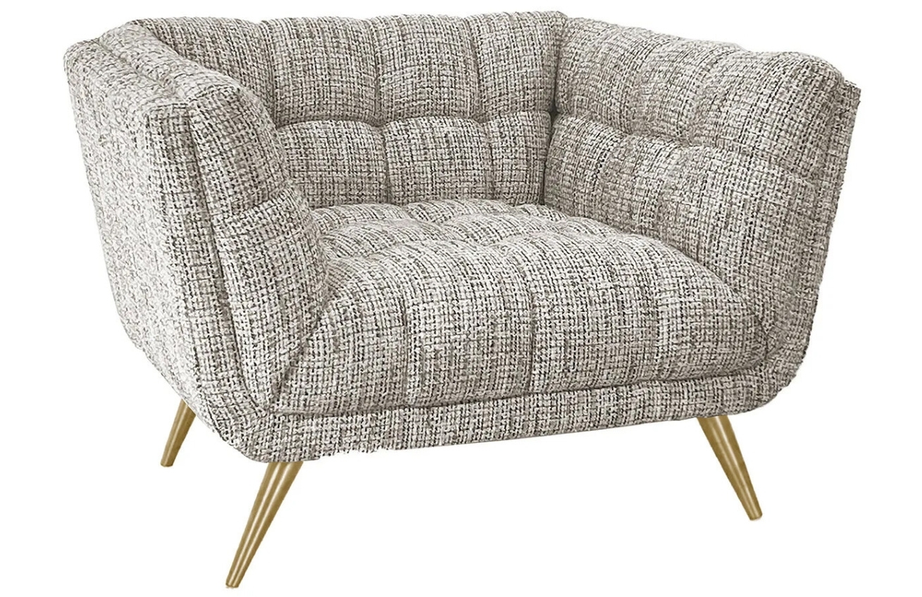 Křeslo Richmond Huxley zaujme svým elegantním designem, který na první pohled láká k pohodlnému posezení. Jeho čalounění je tvořeno velice příjemnou tkaninou v zemitých barvách a je ozvláštněno výrazným čtvercovým prošíváním. Křeslo stojí na vyšší podnoži z lakovaného kovu, která vyniká svou zlatou barvou. Skvěle zapadne do moderně laděných interiérů a stane se jejich výraznou ozdobou.