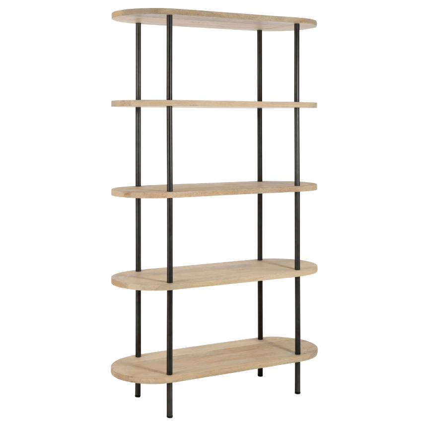Čistý design v podobě regálu Glaryc přináší do interiéru minimalistického ducha. Pět polic z mangového dřeva v přírodním odstínu oceníte pro větší úložný prostor a kvalitu materiálu. Černá kovová podnož propojuje oválné desky a vytváří tak harmonicky vypadající kousek, který můžete využít ať už jako prostor pro knihy a dekorace, nebo jako regál pro vaší domácí pracovnu. Glaryc pochází ze série produktů, které jsou vhodné zakomponovat do skandinávsky laděných interiérů.