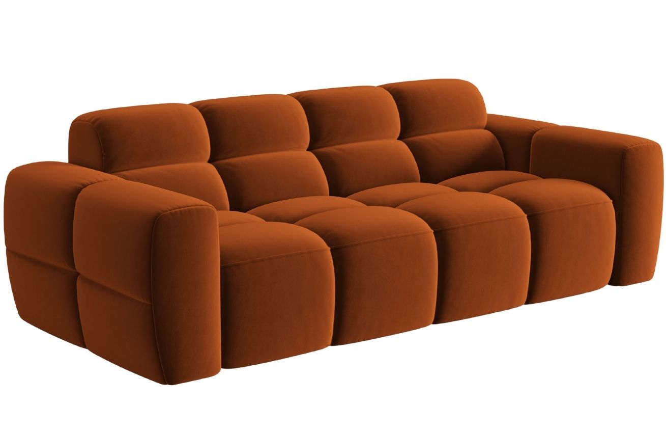 Popis produktu Oranžová sametová trojmístná pohovka MICADONI Lisa 216 cm