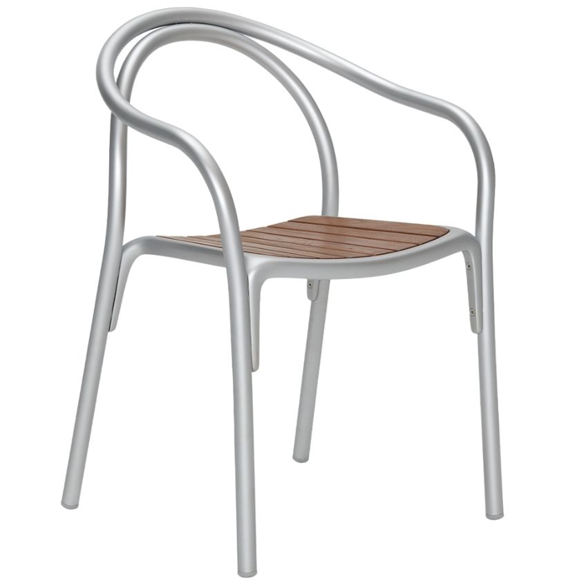 Stylová zahradní židle Pedrali Soul je inovativní a originální židle, schopná vyjádřit myšlenku moderní ekologie. Hliníková konstrukce ve stříbrné barvě svírá ergonomické sedadlo z teakových lamel. Minimalistická plynulá silueta je zdůrazněna kovovým rámem, který zajišťuje stabilitu a odolnost i v exteriérech. Dřevo lehce kontrastuje s kovem a dodává židli na originalitě a osobitém designu. Židle se skvěle hodí na terasu, zahradu či dalšího exteriéru.