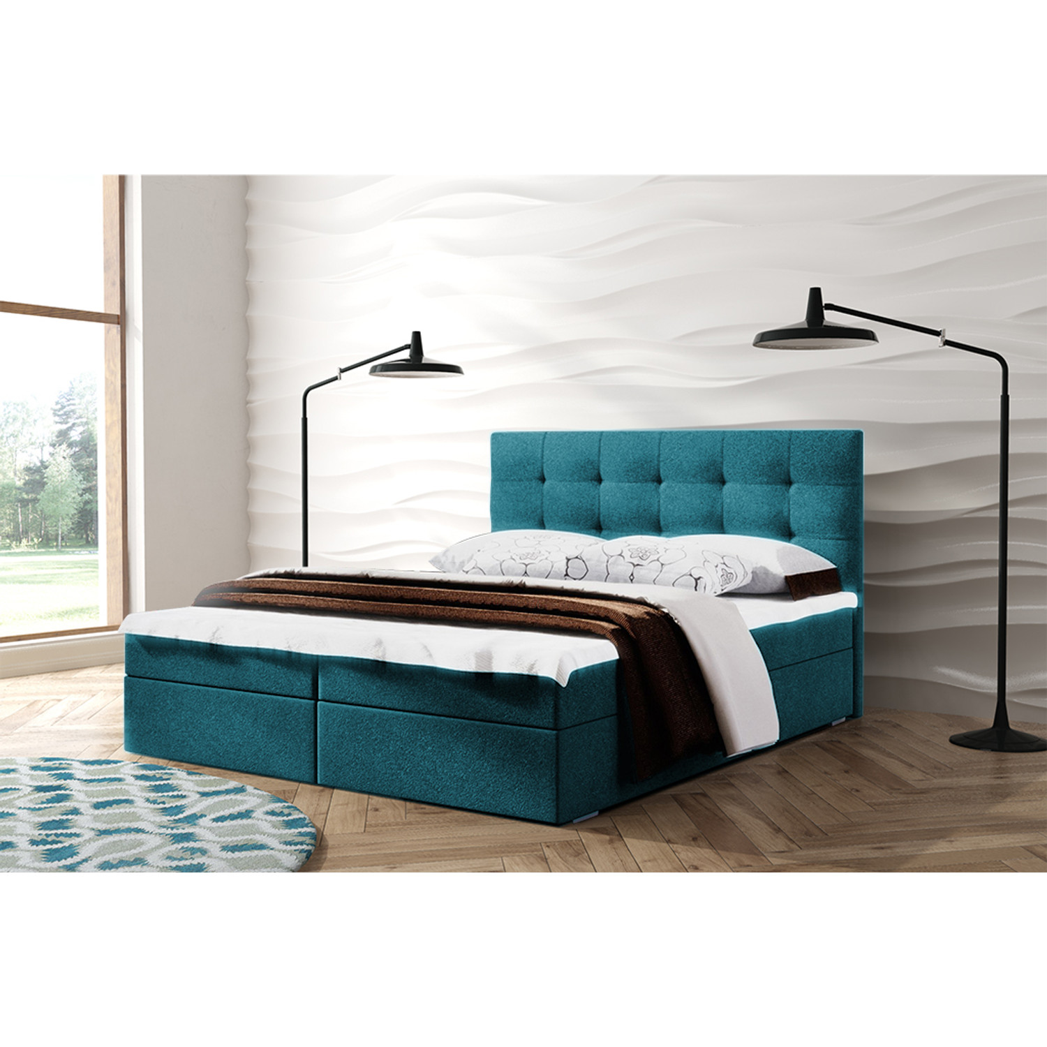 Popis produktu Postel 52 MISSISSIPPI 200x200 cm s úložným prostorem - stříbrné nohy Tyrkysová