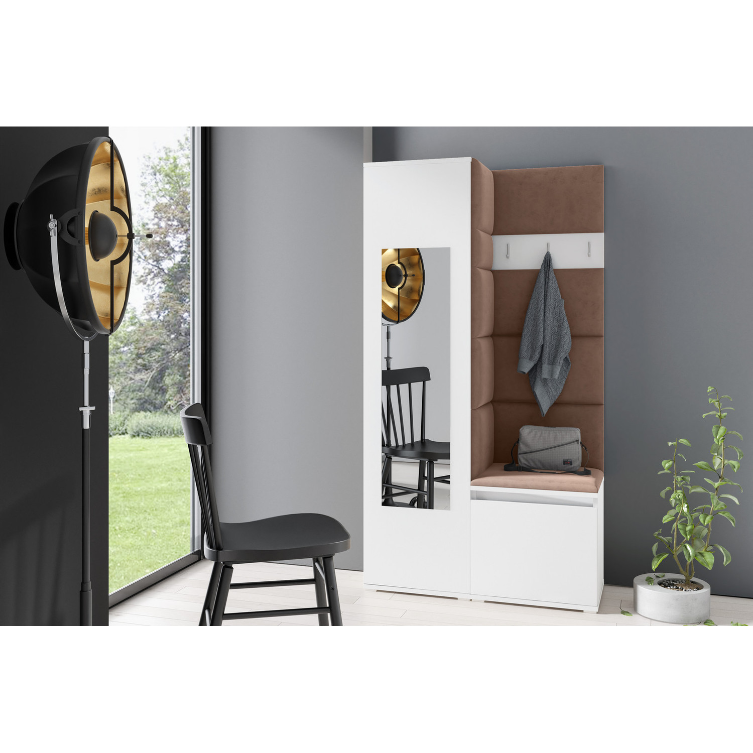 Popis produktu Předsíňová stěna AMI 13 Hnědá Bílá Se zrcadlem