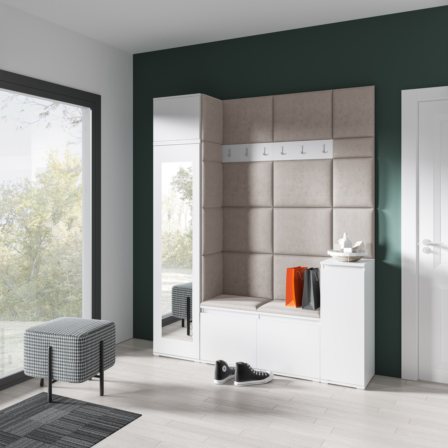 Předsíňová stěna AMI 29, je moderní a praktický prvek do vstupních prostor vašeho domu. Předsíňová stěna obsahuje devatenáct čalouněných panelů, které se montují přímo na stěnu za pomoci lepidla. Potah botníku je tkanina TRINITY, která je měkká a příjemná na dotek. Jedná se o velurovou tkaninu. Předsíňová stěna se skládá z několika částí. Údržba: Vyhněte se použití chemikálií. Lepidlo není součástí balení.Pozor, počet kusů na skladě může být u akčního zboží omezen. Nákup u nás potěší také vaši peněženku.