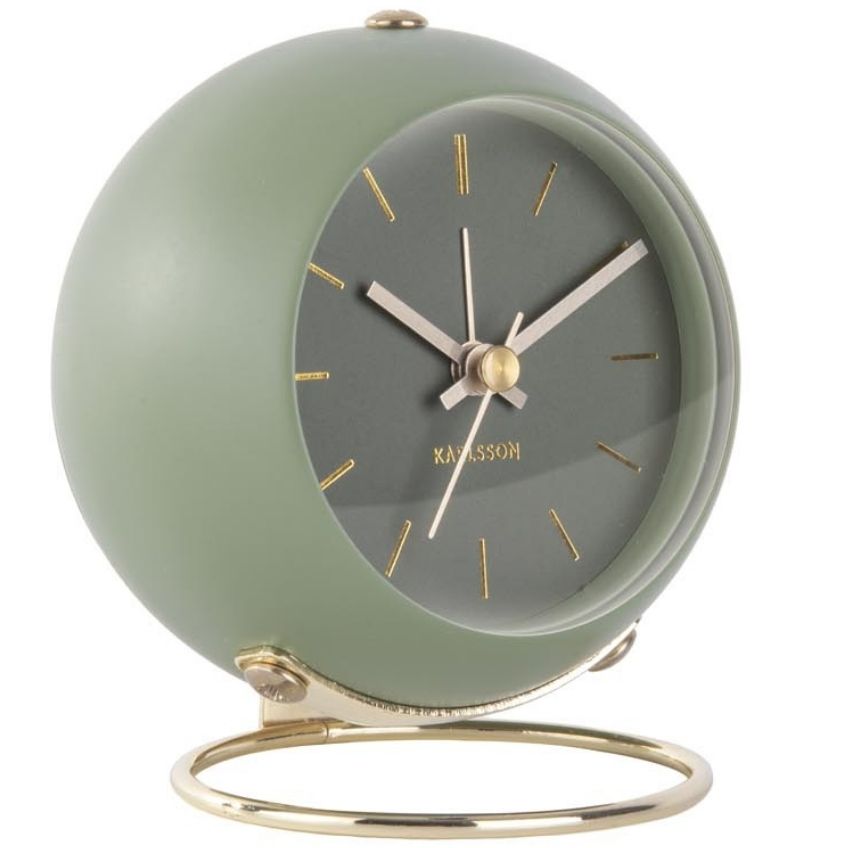 Popis produktu Present time Zeleno-zlatý kovový kulatý budík Belene S