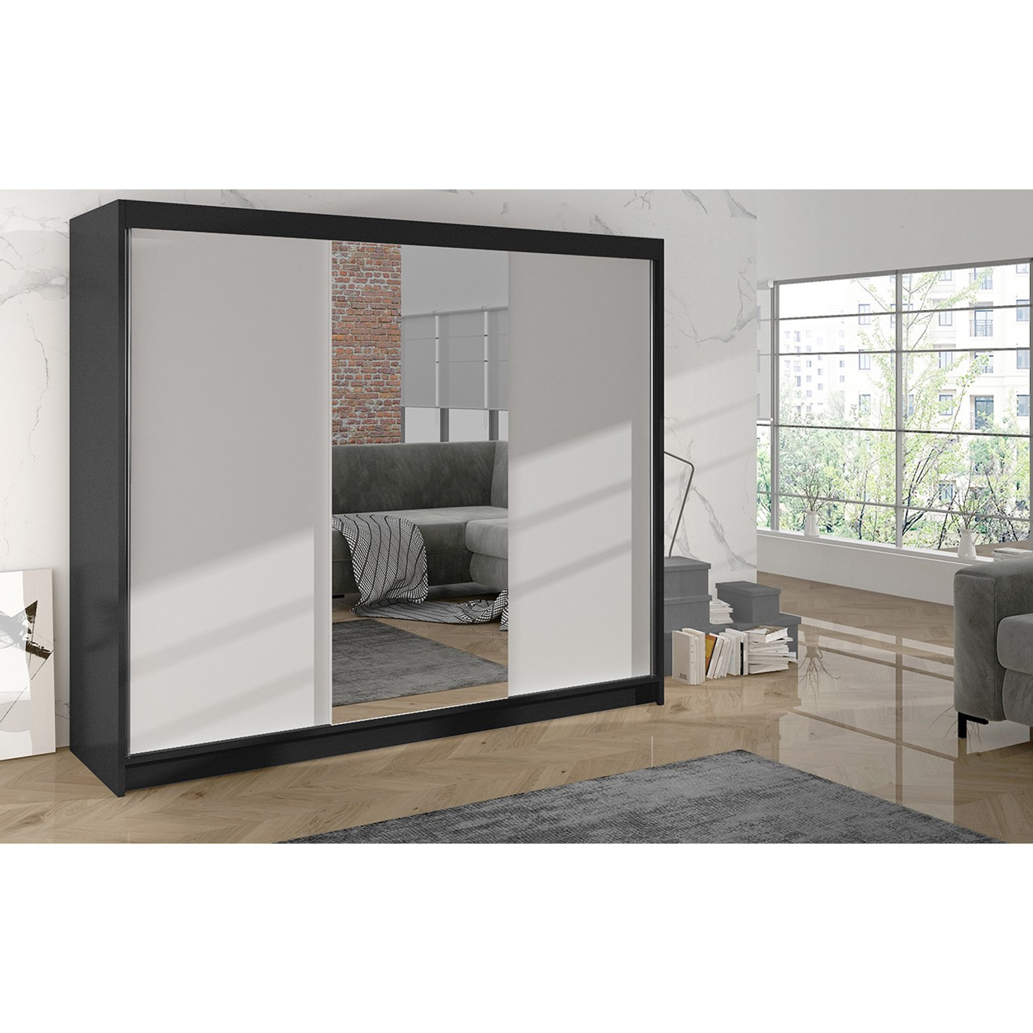 Popis produktu Šatní skříň DERBY I - 200 cm Černá/Bílá