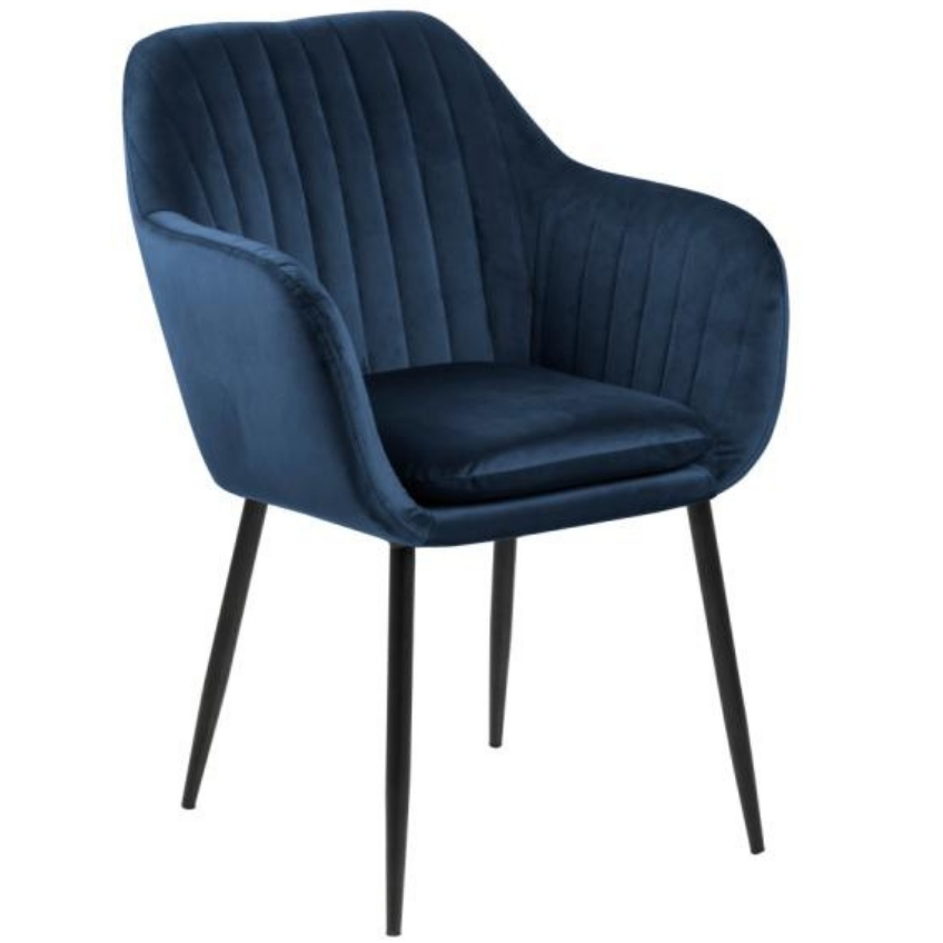 Popis produktu Scandi Modrá sametová jídelní židle Milla s černou podnoží