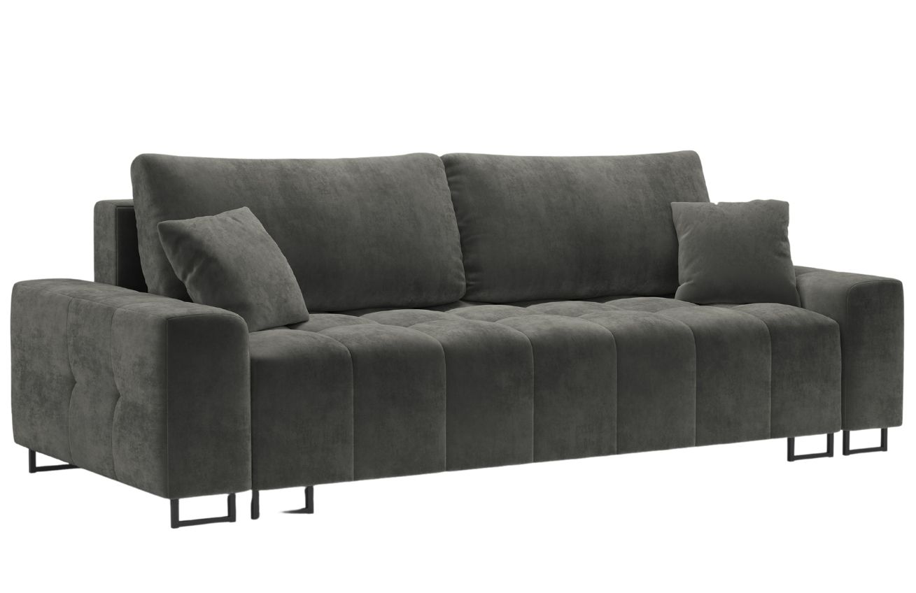 Popis produktu Šedá sametová třímístná rozkládací pohovka MICADONI BYRON 250 cm