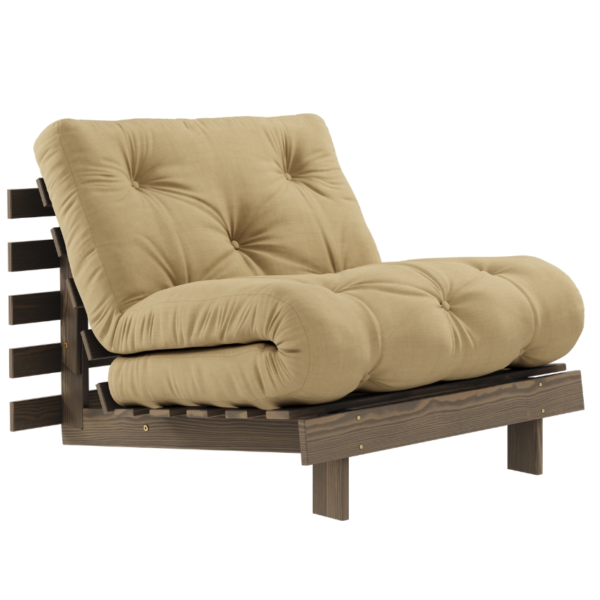 Popis produktu Tmavě béžové rozkládací křeslo Karup Design Roots s hnědou konstrukcí