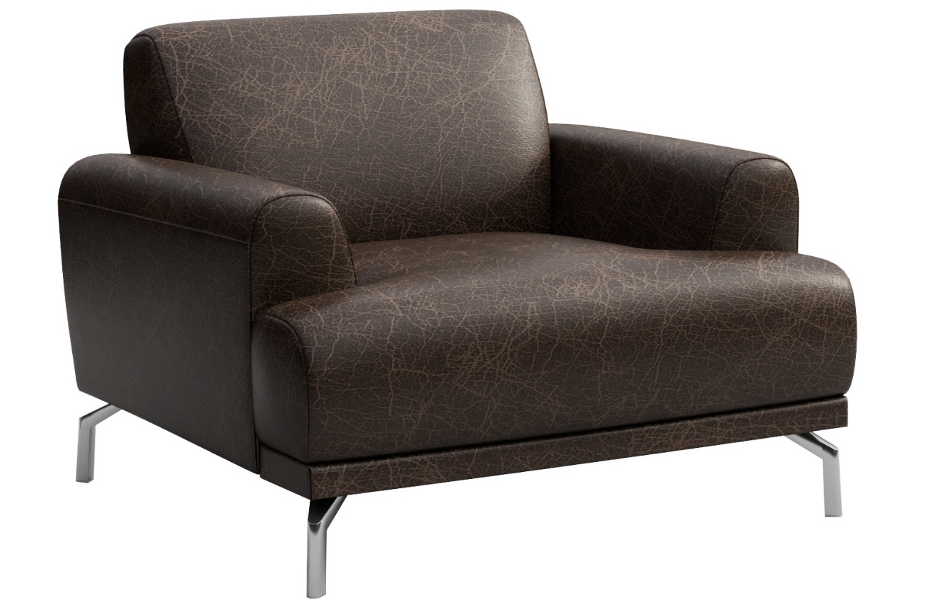Designové křeslo Puzo rozhodně zaujme na první pohled. Robustně vyhlížející křeslo je čalouněné pravou kůží ve vintage tmavě hnědém odstínu a opatřená stabilní kovovou podnoží. Toto křeslo elegantních linií a působivého provedení vnese do vašeho domova jedinečný styl a díky pohodlí, které poskytuje, si ho zamilujete nejen vy ale i celá vaše rodina.