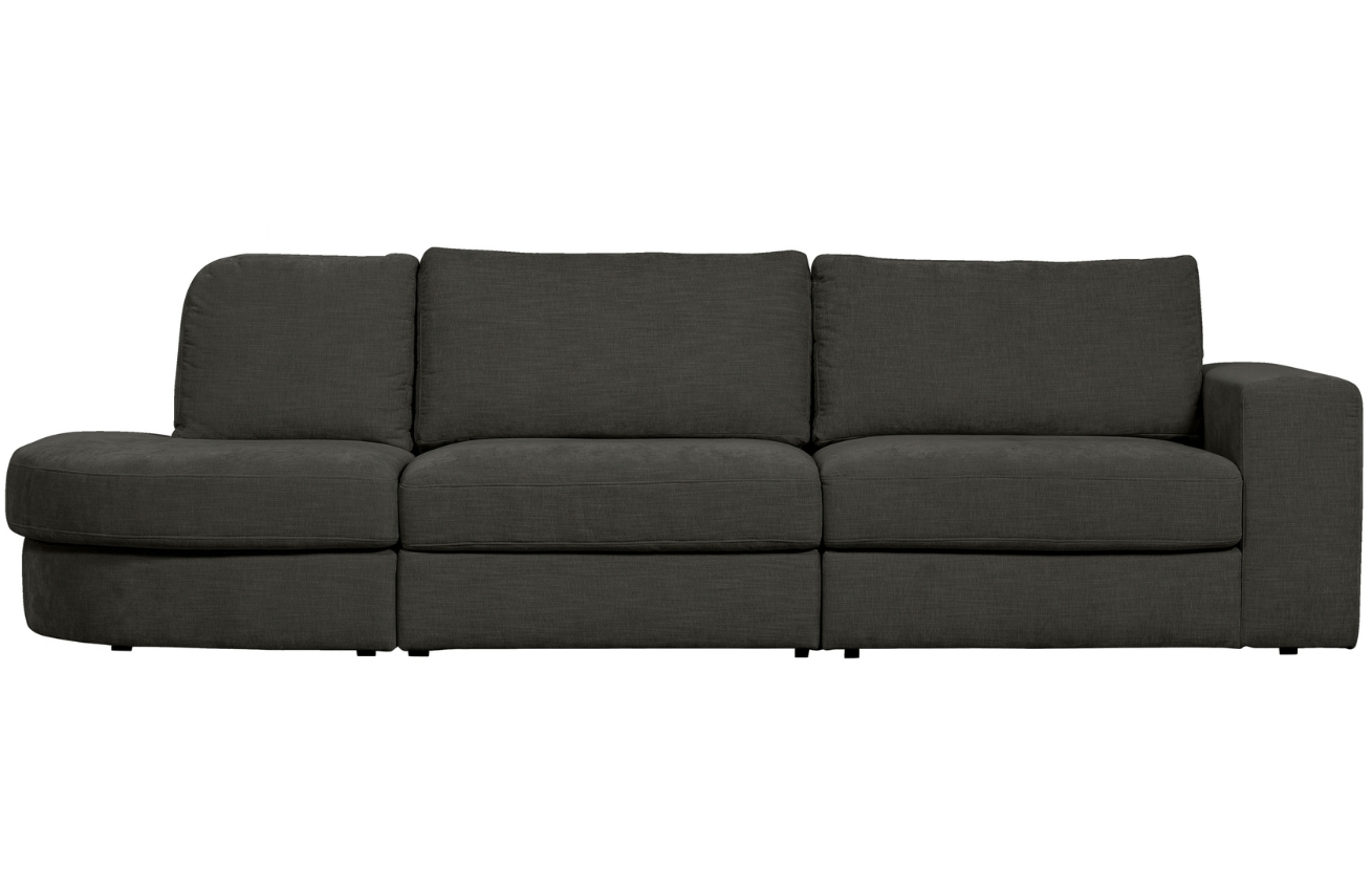 Popis produktu WOOOD Antracitově šedá látková třímístná pohovka Flaireen 298 cm, pravá