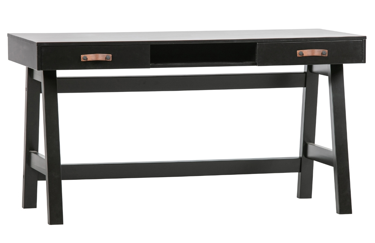 Psací stůl Rea zaujme svým neotřelým designem. Černé tělo a podnož z masivního borovicového dřeva doplňují kožené úchytky hnědé barvy. Použité dřevo získalo certifikaci FSC, protože pochází z šetrně obhospodařovaných lesů. Výroba stolu je tedy šetrná k životnímu prostředí. Na první pohled drsný vzhled je díky modernímu provedení snadno kombinovatelný s různými styly nábytku a zapadne i do vašeho interiéru. Úložný prostor poskytují dvě praktické zásuvky a malá police, které usnadní uspořádání pracovní plochy a zvýší tak vaši produktivitu.